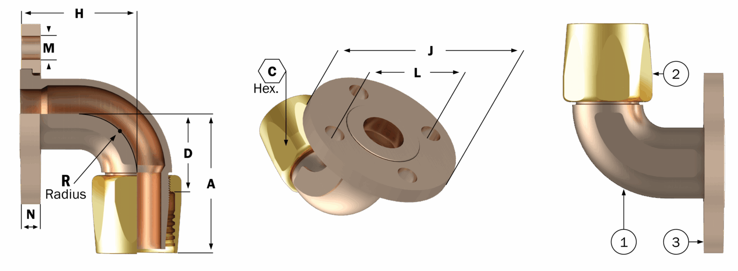 | Elbow | 1 | 188-185029- | 8-16 | 12-20 | 16-24 | 20-32 | 24-32 | 32-32 | 32-40 | 48-48 | Aluminum. Bronze |